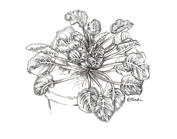 This is an illustration of an African violet, drawn with pen on vellum.