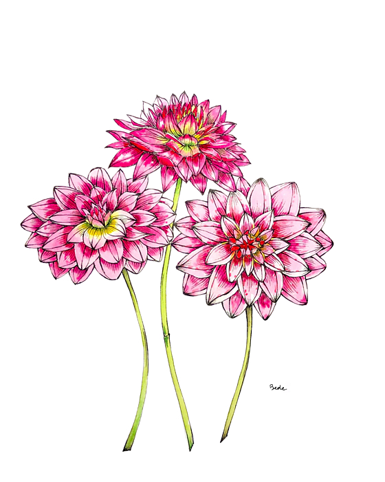 This is the second in a series of three watercolor and ink dahlia illustrations.