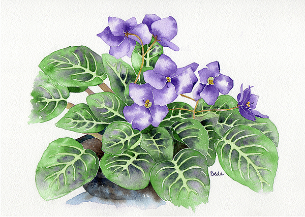 This is part of my watercolor African violet series. These are paintings of my African violets, which I love!