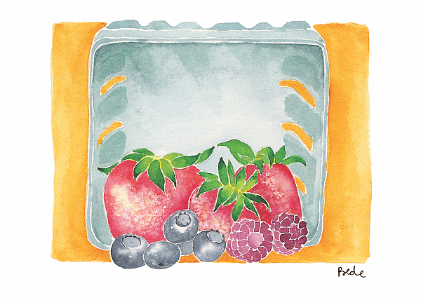 This is a watercolor painting of a hallock of strawberries, blueberries and raspberries spilling out. I grew up picking strawberries and blueberries... more